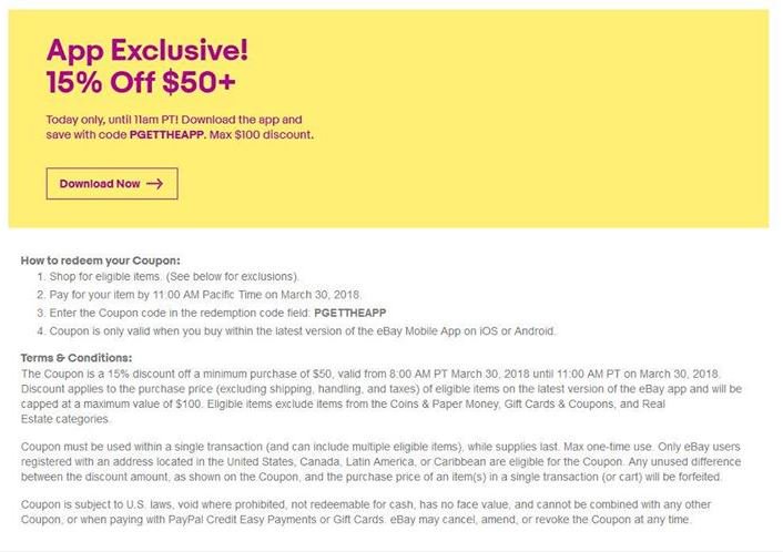 Ebay android app coupon